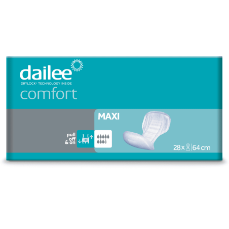 Dailee Comfort Maxi ha un’assorbenza di 8,5 gocce , è un assorbente rettangolare grande ideale per incontinenza